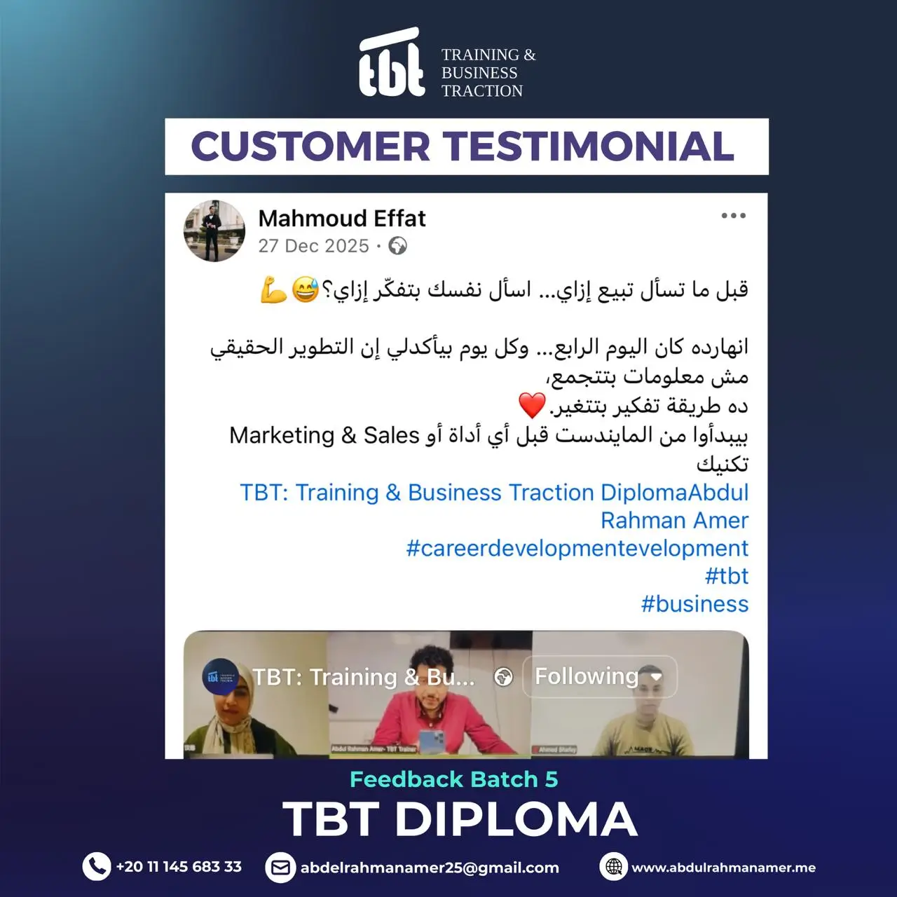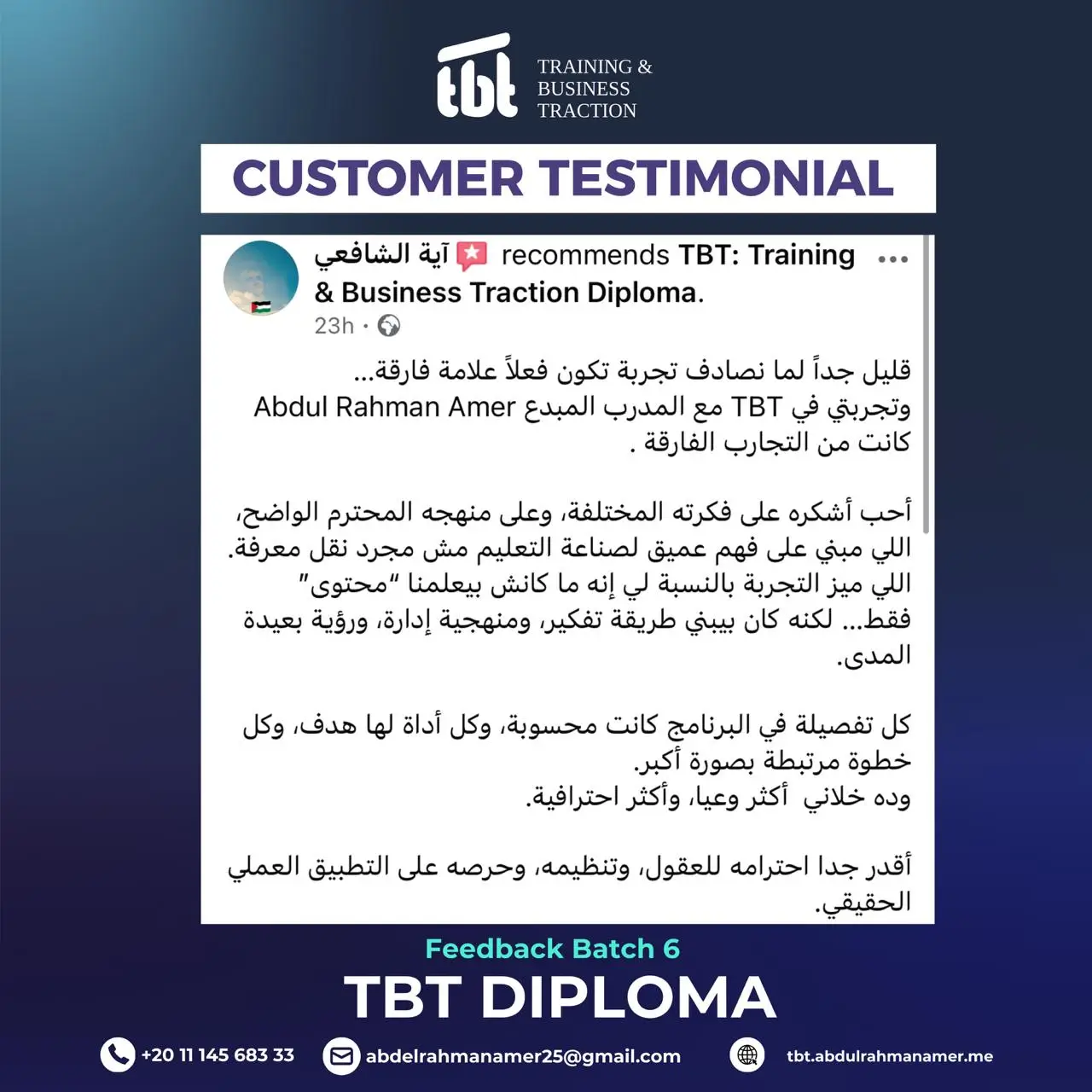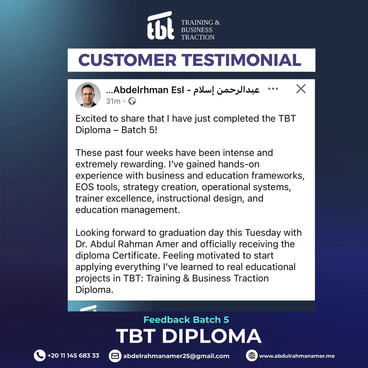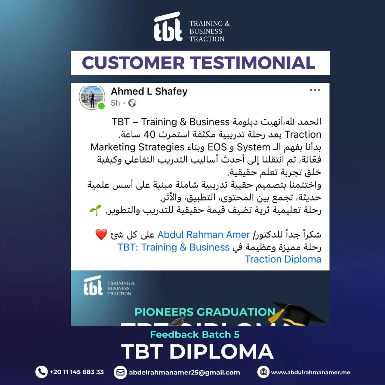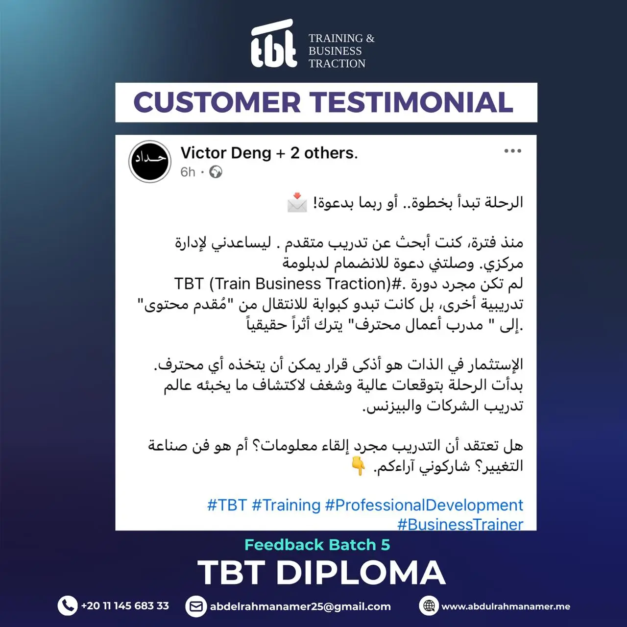 وحصولك على دورات TOT احترافية من تصميم وتقديم د. عبد الرحمن عامر، دورات عالية الجودة وعالية القيمة المادية، ولكنها ستكون مجانية بالكامل لخريجي TBT الجدد.