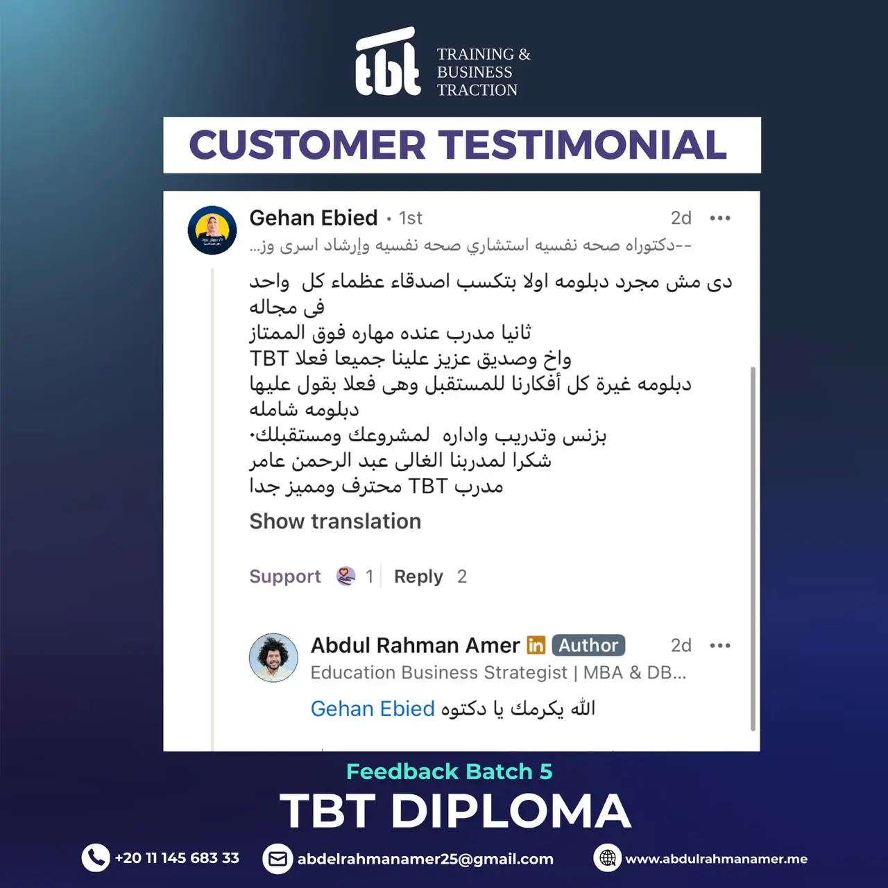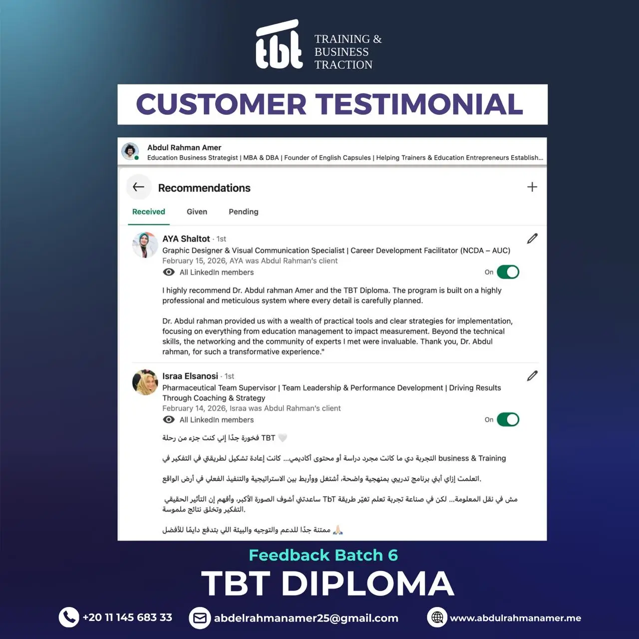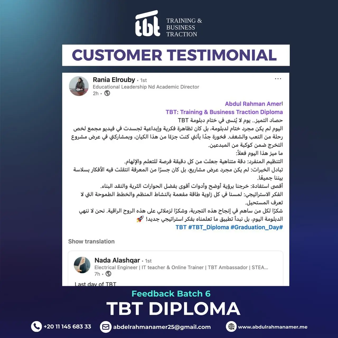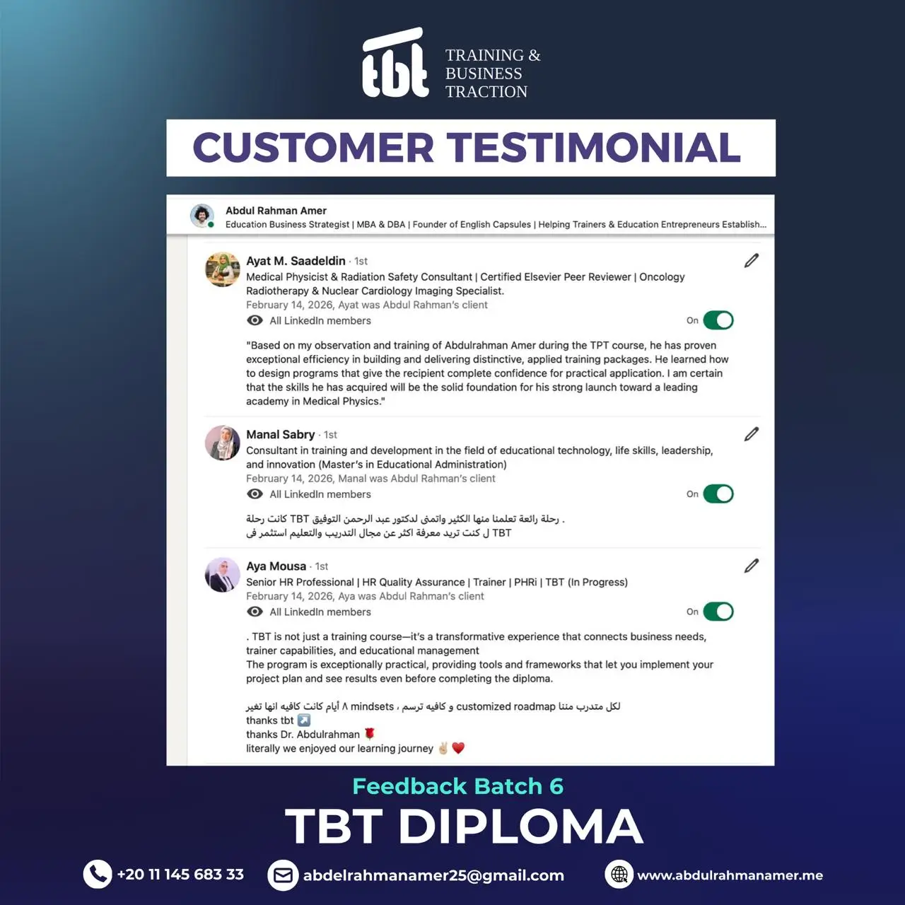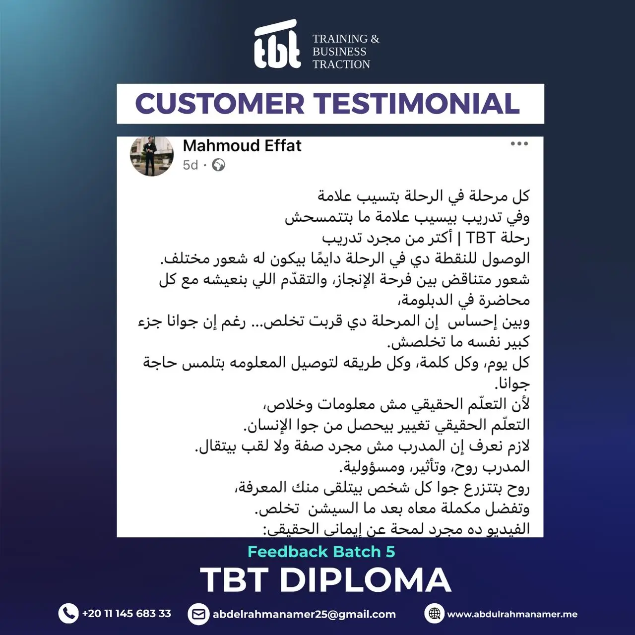 وحصولك على دورات TOT احترافية من تصميم وتقديم د. عبد الرحمن عامر، دورات عالية الجودة وعالية القيمة المادية، ولكنها ستكون مجانية بالكامل لخريجي TBT الجدد.