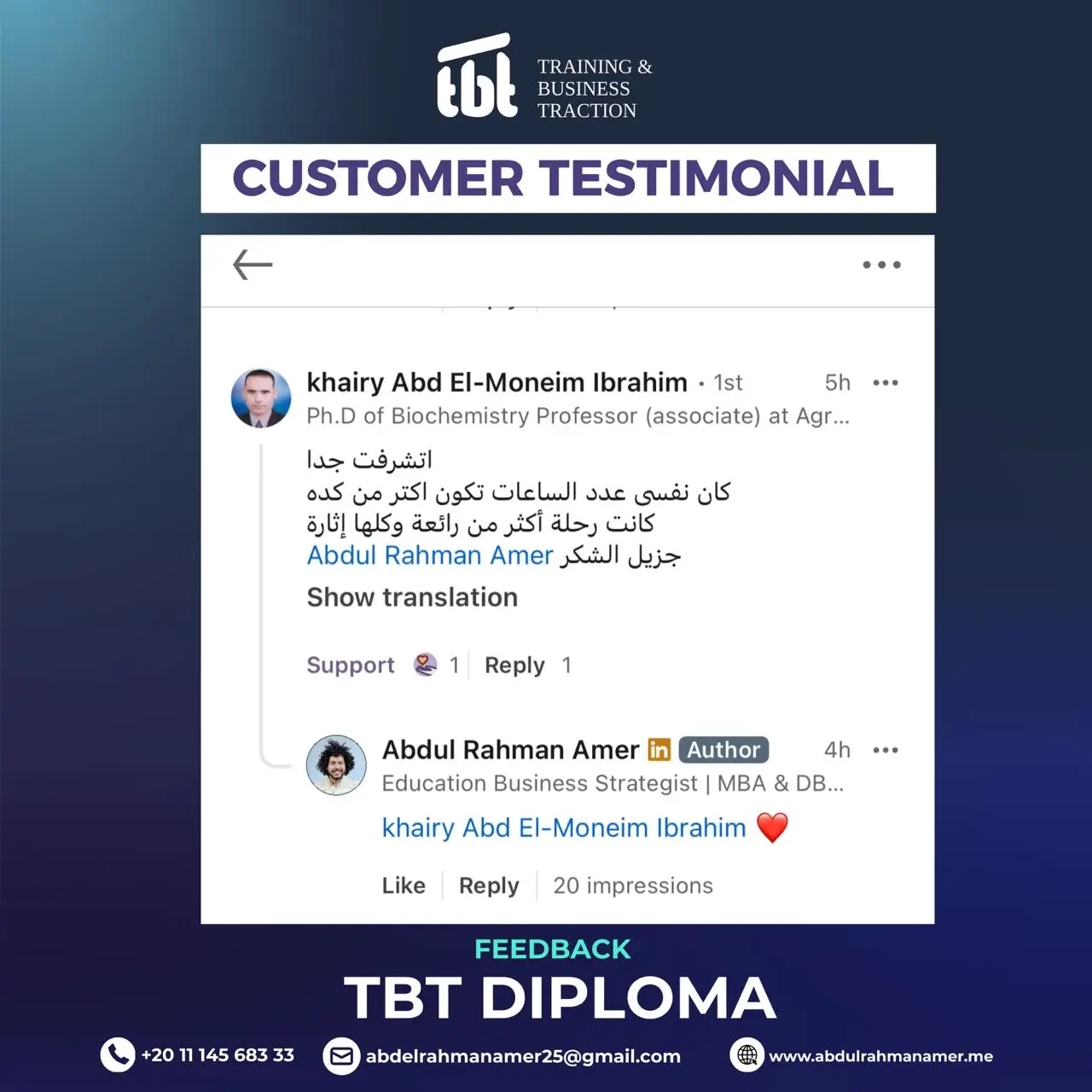 يمتلك د. عبد الرحمن خبرة تمتد لأكثر من 14 سنوات في بناء وتطوير المشاريع التعليمية وإدارة الفرق التدريبية، وهو مؤسس أكاديمية English Capsules التي توسعت إلى عدة فروع داخل مصر.