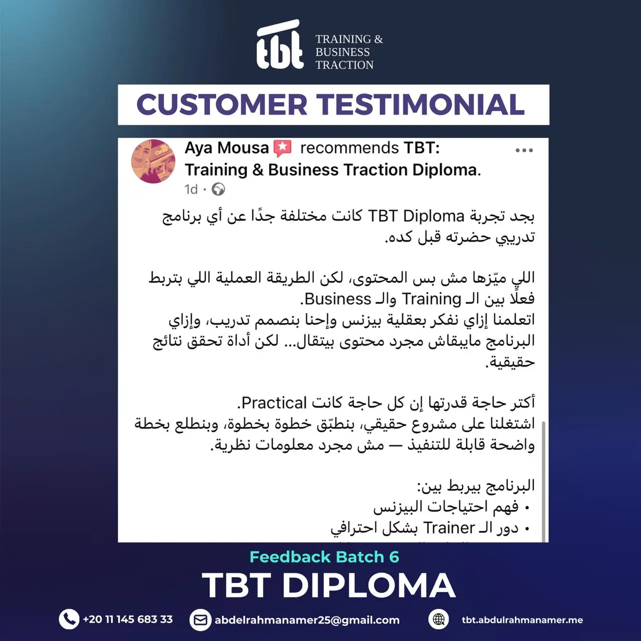 دبلومة TBT مناسبة لك إذا: