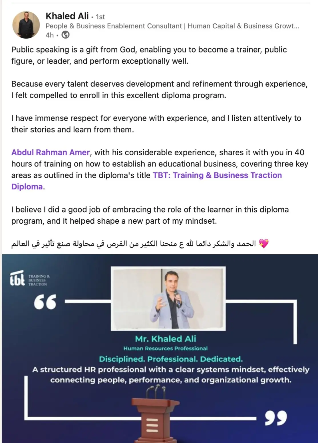 بدء الرحلة التدريبية العملية لمدة 40 ساعة ومعرفة النظام الكامل الخاص بــ TBT (Training & Business Traction).