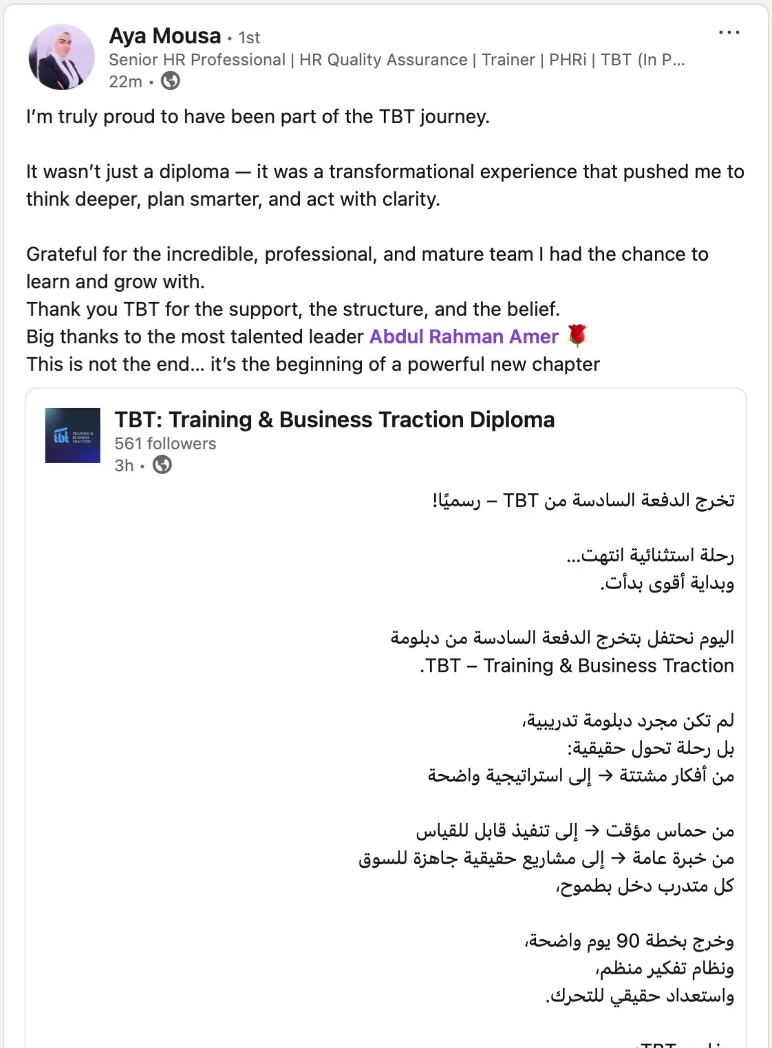 هل يوجد مجتمع (Community) لخريجي دبلومة TBT؟
