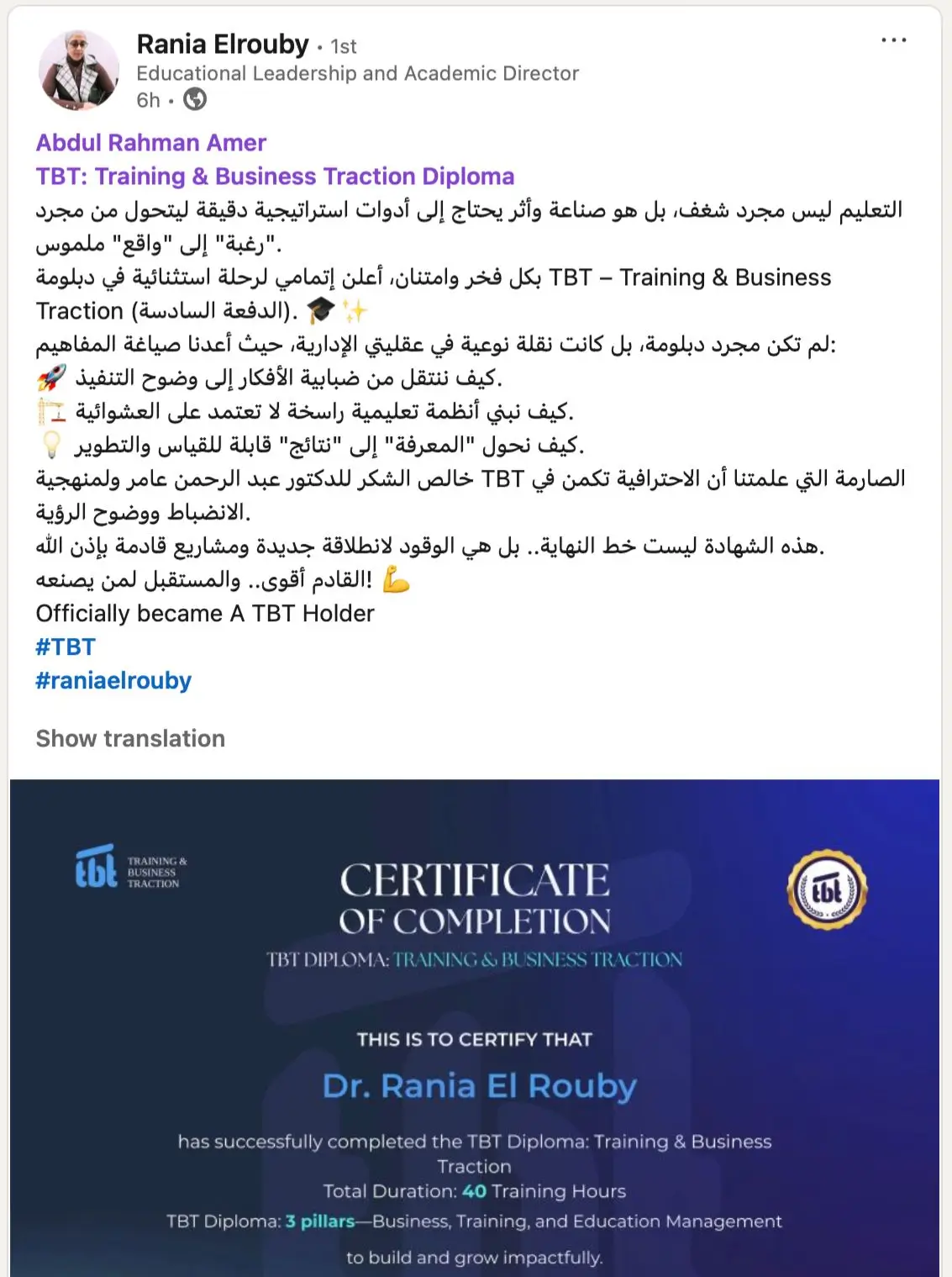 الدبلومة الأولى في الوطن العربي (TBT Diploma) لدمج استراتيجيات البزنس Business Strategy، جودة التدريب Training Excellence، والإدارة التعليمية (Educational Management) في نظام واحد متكامل EOS®.